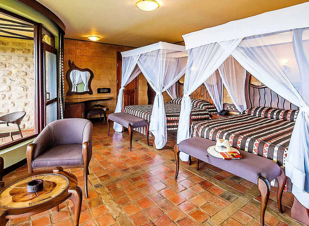 這座旅館坐落於納庫魯湖國家公園(Lake Nakuru National Park)內,該公園以火烈鳥、犀牛及其他多樣化的野生動物聞名。旅館位於制高點,可將納庫魯湖及周圍的森林與草原美景盡收眼底,為旅客提供壯麗的自然景觀。 Lake Nakuru Sopa Lodge 擁有寬敞的獨棟小屋,採用傳統非洲建築風格,搭配茅草屋頂,每間小屋均設有私人露台,讓賓客能夠悠閒地欣賞迷人的湖泊與大自然景色。 客房內部裝潢典雅,配備現代化設施,包括獨立衛浴、舒適的床鋪,以及融合當地文化元素的精緻裝飾,為旅客提供兼具傳統魅力與現代舒適度的住宿體驗。