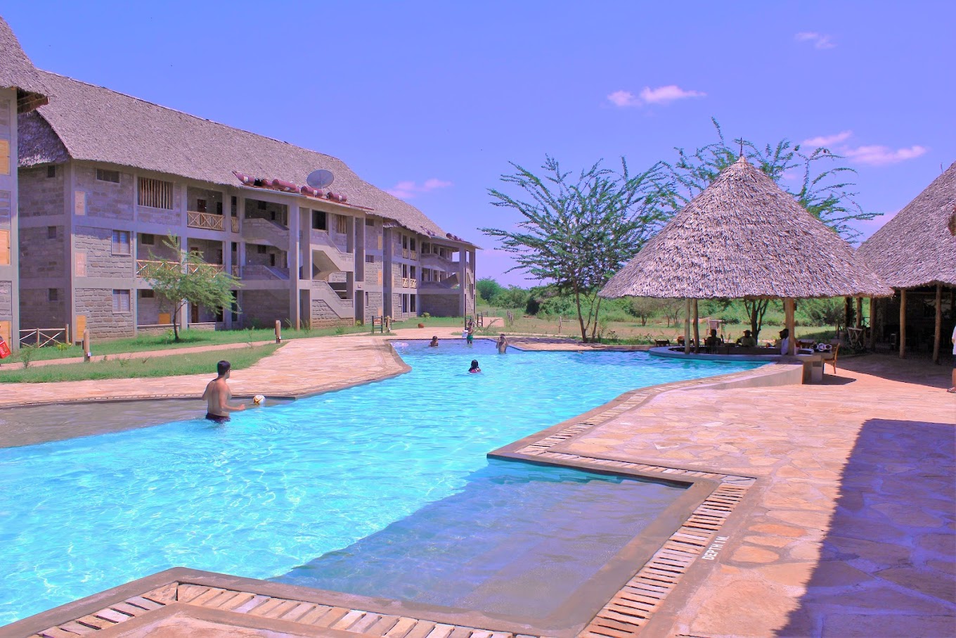 Voi Wildlife Lodge 位於察沃東國家公園的邊界地帶,毗鄰 Voi 河,旅館的視野極為遼闊,可以俯瞰無邊無際的非洲草原,欣賞壯觀的日出與日落。這裡是肯亞最著名的野生動物聚集地之一,旅客可在飯店內或其周圍觀察大象、獅子、長頸鹿、斑馬、羚羊等多種動物,並欣賞肯亞紅色沙地與藍天交織而成的壯麗景緻。