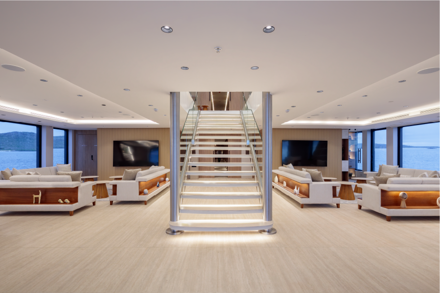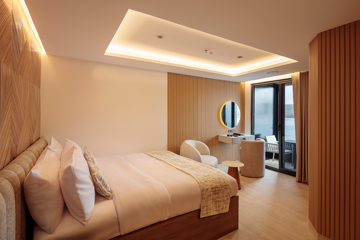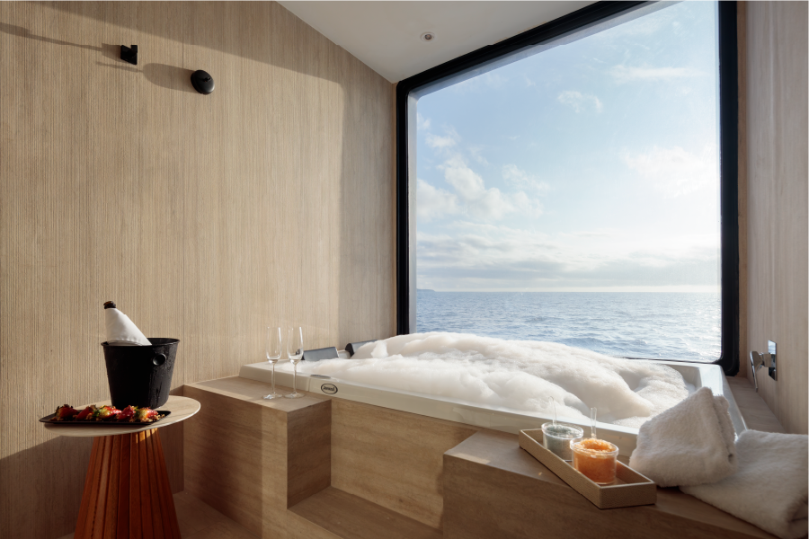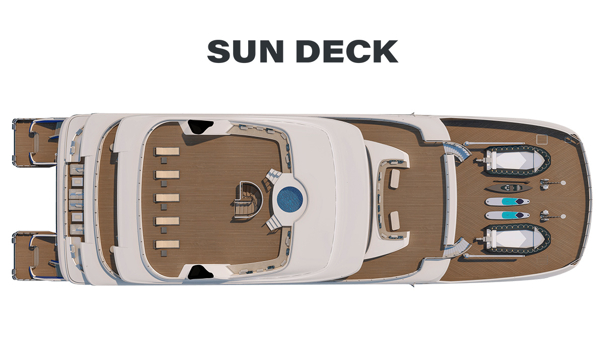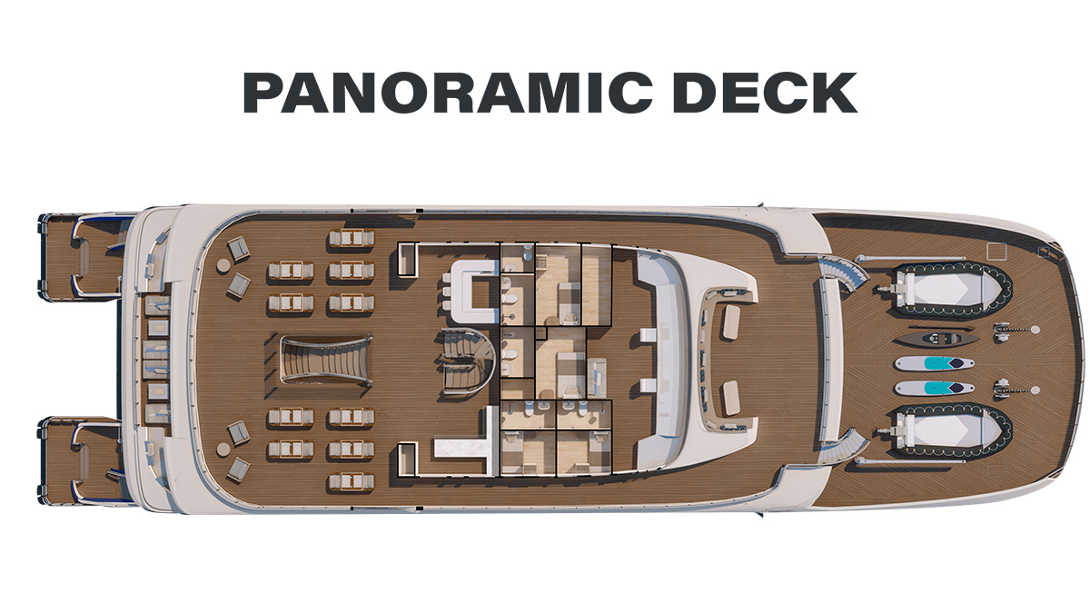 Double suites are 35 m² (377 ft²) on average, and all of them can be convertible. Four double suites located on the main deck can be interconnected.